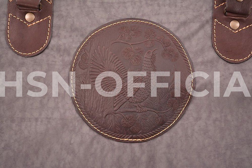 Изготовлен в традиционной форме из специальной ткани и натуральной кожи.
