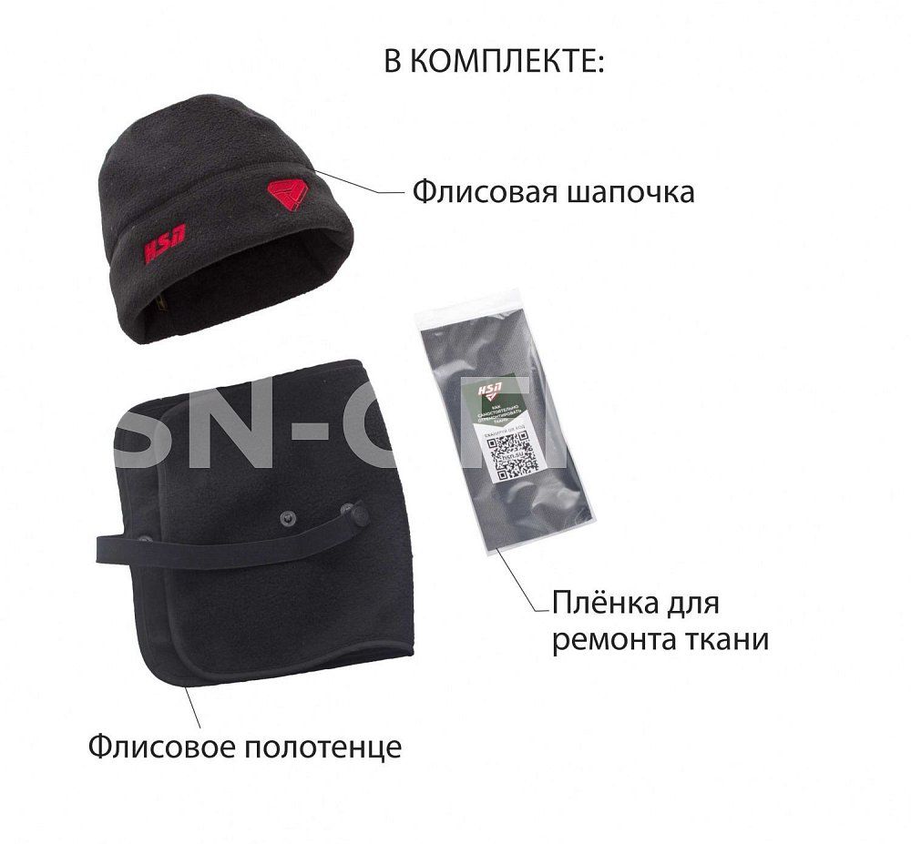 - комплектуется свистком, флисовым полотенцем с креплением на ногу, салфеткой для оптики (в левом нагрудном кармане), а также флисовой шапкой;