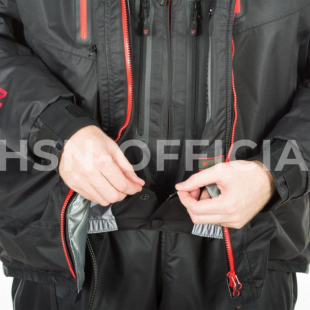 Для безопасной и комфортной рыбалки на передней планке куртки вшита молния для пристегивания страховочного жилета арт. 9729. Удобная опция обеспечивает свободный доступ к внутренним карманам куртки, предотвращает зацеп лески. Ничего не будет отвлекать вас от любимого занятия.