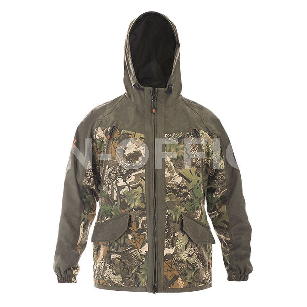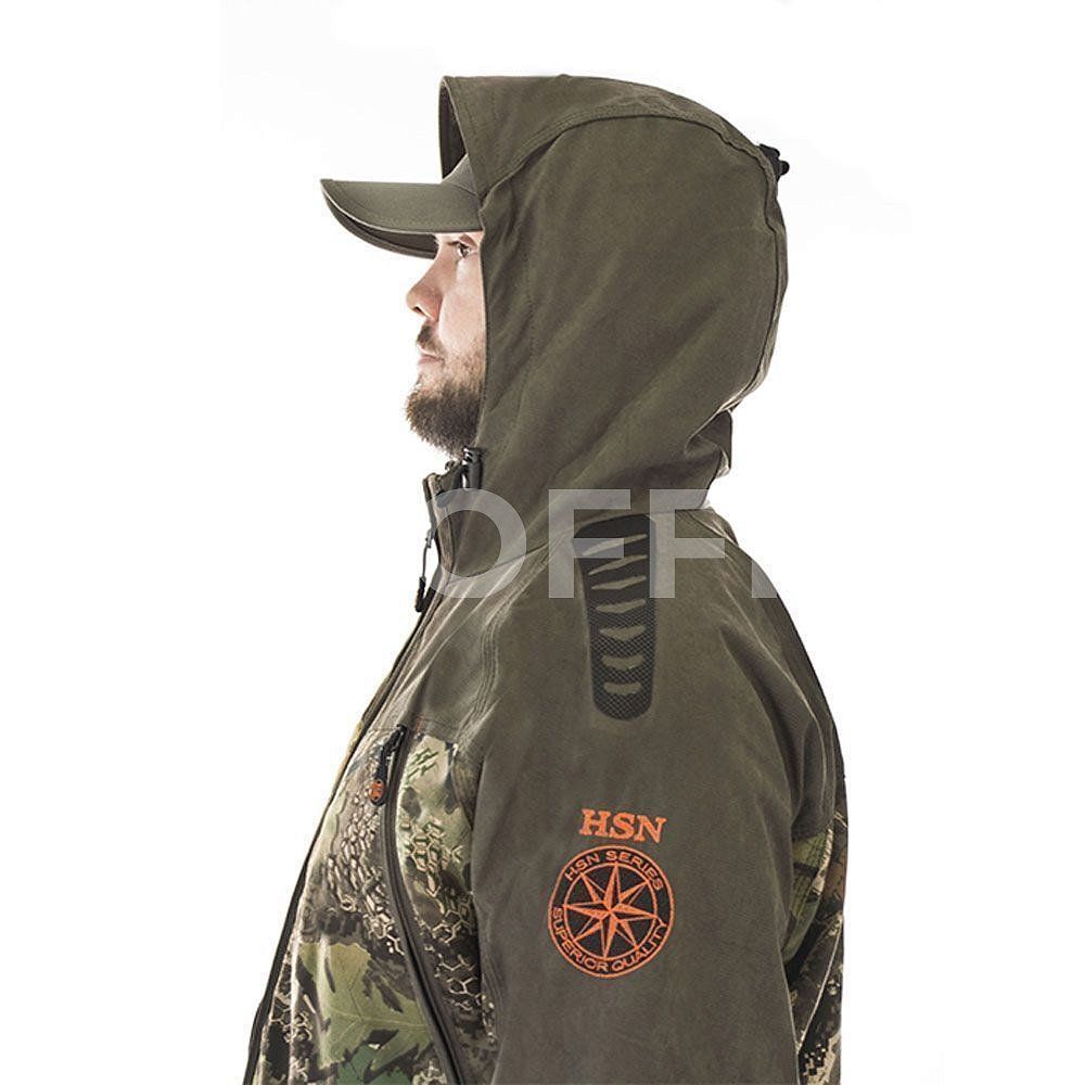 Костюм выполнен из мягкой, бесшумной, смесовой ткани с пропиткой Teflon®, обладающей отличными ветро- и влагозащитными свойствами, а также повышенной износостойкостью. Отделка выполнена из мембранной ткани Finlandia.