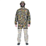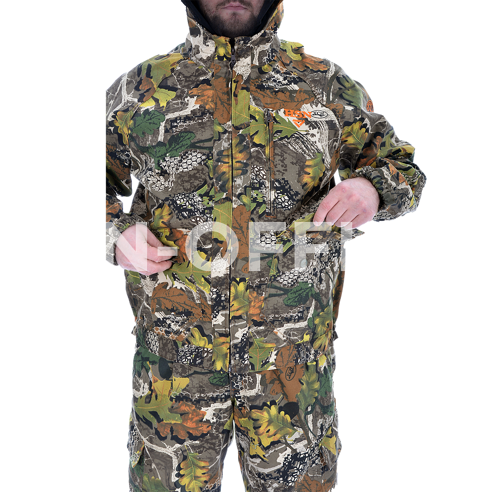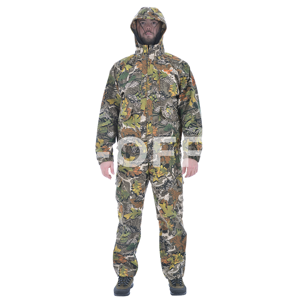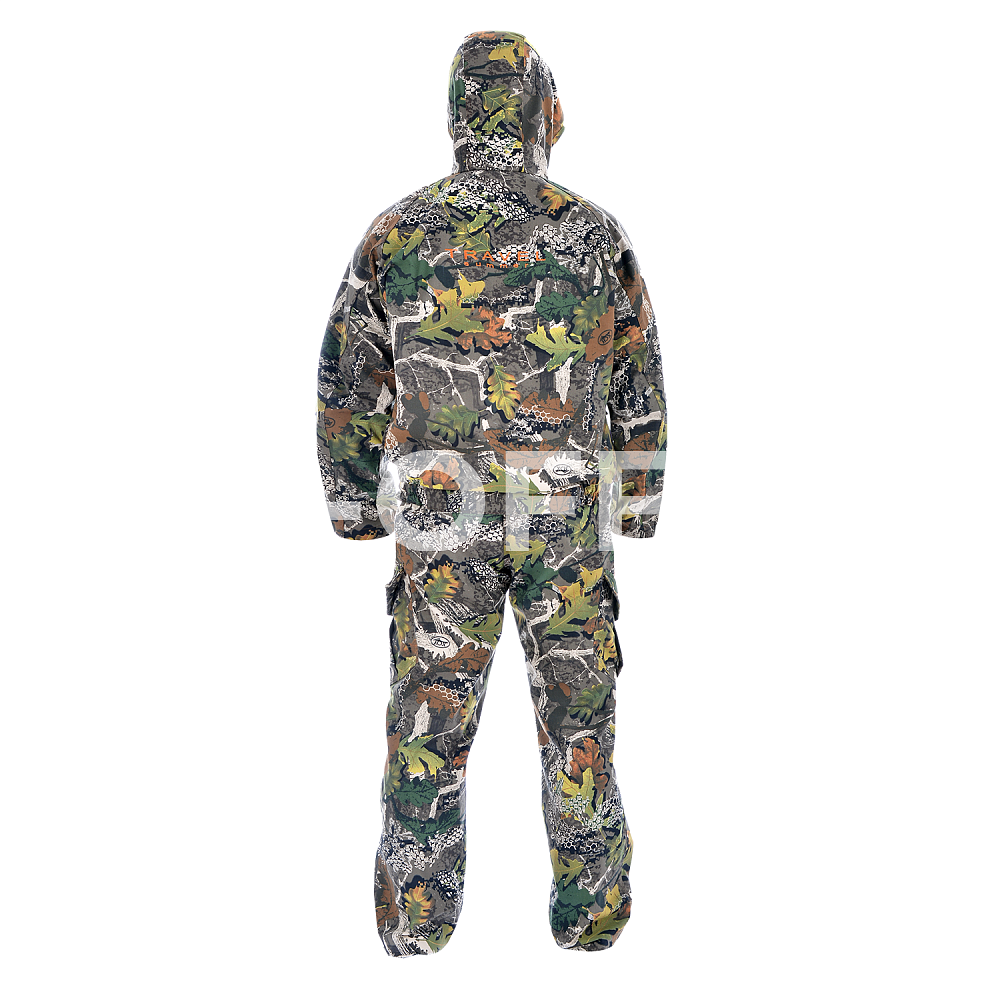 Изготовлен из специальной ткани с содержанием хлопка (35% пэ и 65% хб) с пич эффектом. Инновационные камуфлированные рисунки идеально маскируют охотника в любой местности.