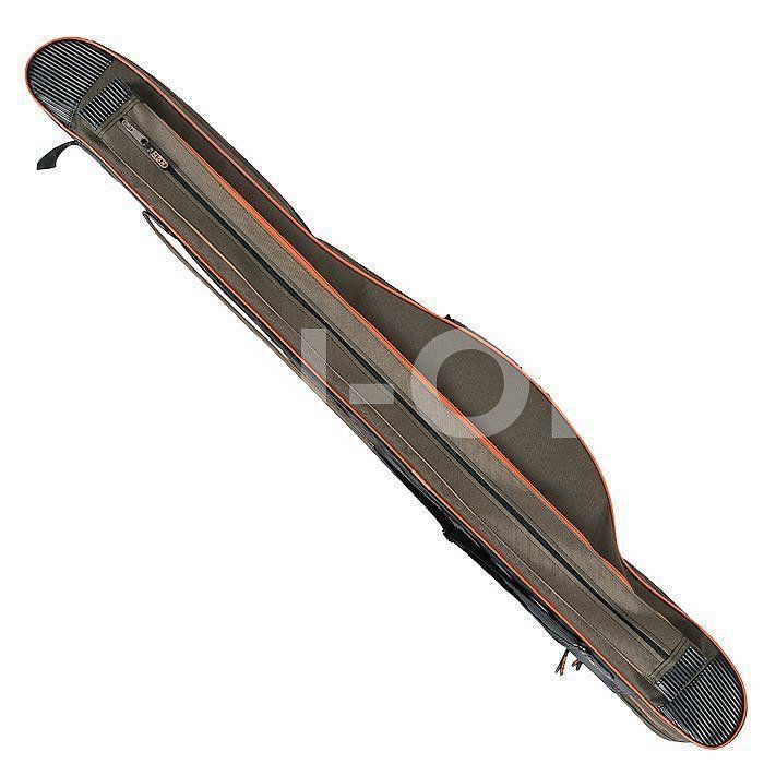 Сделан из пластмассовой трубы, обтянутой тканью Oxford(водостойкая). Внутри и по бокам обклеена ППУ 2 мм. Стенки сбоку и перегородка с наполнителем ППЭ (толщина 8 мм.) для защиты от трения и внешних повреждений.Дно уплотнено пластмассой. В производстве применяют итальянскую фурнитуру, почти не звенящую и не бликующую, а раскрой изделия выполняется на специальном для этого оборудовании, что обеспечивает отличное качество. Есть один большой карман, а также карман-секция для использования стойки или подставки. В тубусе помещается от двух до пяти спиннингов. В комплекте идут четыре разных чехлов для катушек.